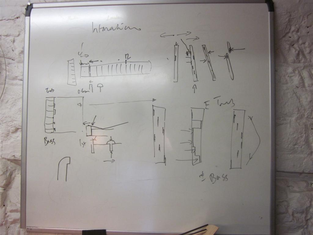 As usual, Phil and I arrived at the workshop earlier than the others . . . which is understandable as Patrick drives back to Guildford each evening – and we started getting on with various tasks left over from yesterday. It seemed it was ‘visitors’ day at Richard’s workshop today as there was a constant stream of people popping in for one thing or another – mostly by mistake. It reminded me of the audition scene in The Commitments – we even had a dog in the workshop at one stage!